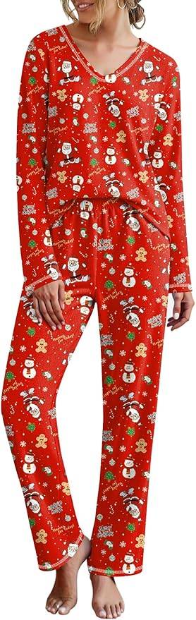 2012 FRCDAUNRS 2 Pack Womens Pajama Sets Long Sleeve Sleepwear Matching Pjs Set