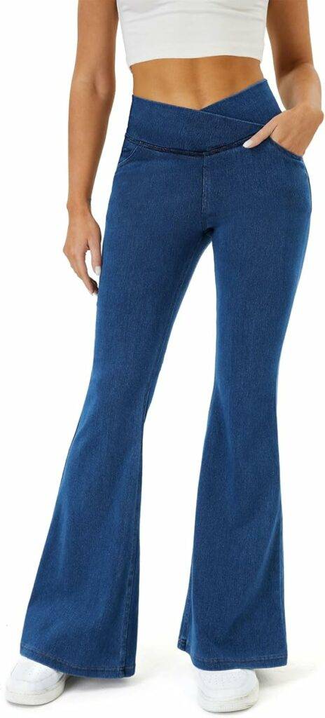 2112 COPYLEAF Bell Bottom Jeans for Women Trendy Crossover Stretchy Jeans Flare Leggings