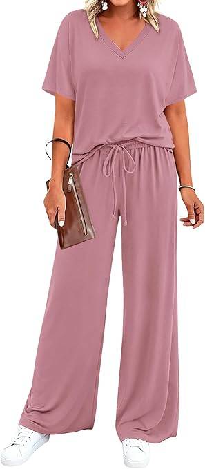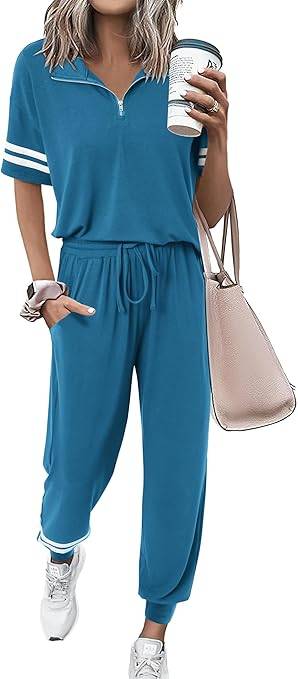0802 MASCOMODA Women 2 Piece Quarter Zip Short Sleeve Tops Long Pants Tracksuit Lounge Sets
