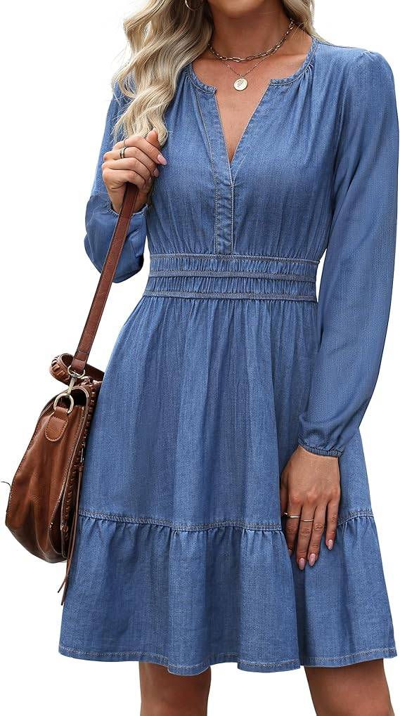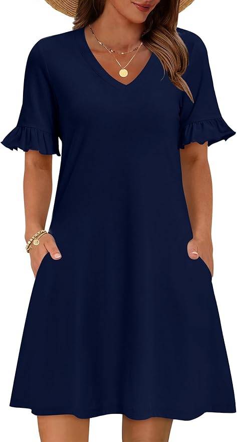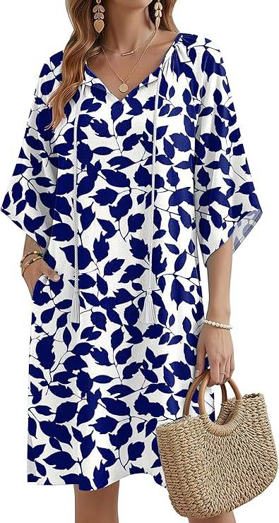 2803 Zeagoo Womens Casual Summer Dress Boho Beach Dresses Tassel Tie Neck