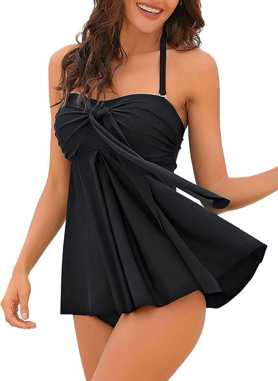1702 LookbookStore Women's Halter Bandeau Self-Tied Tankini Set