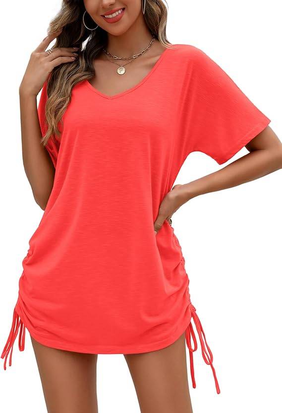 2002 Ekouaer Summer Rompers for Women Short Sleeve Oversized T-shirt Romper