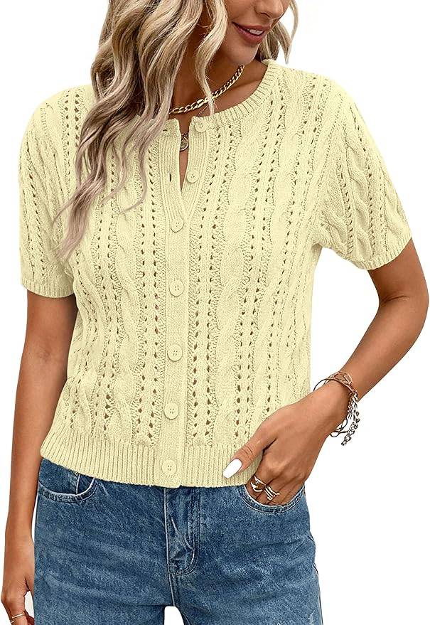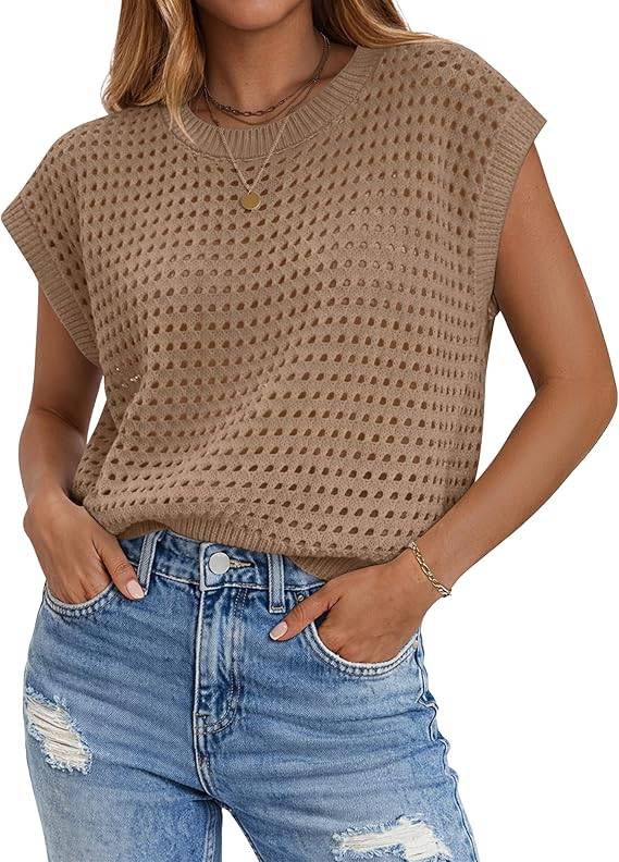 1502 Zeagoo Womens Spring Summer Crochet Tops Cap Sleeve Sweater Vest