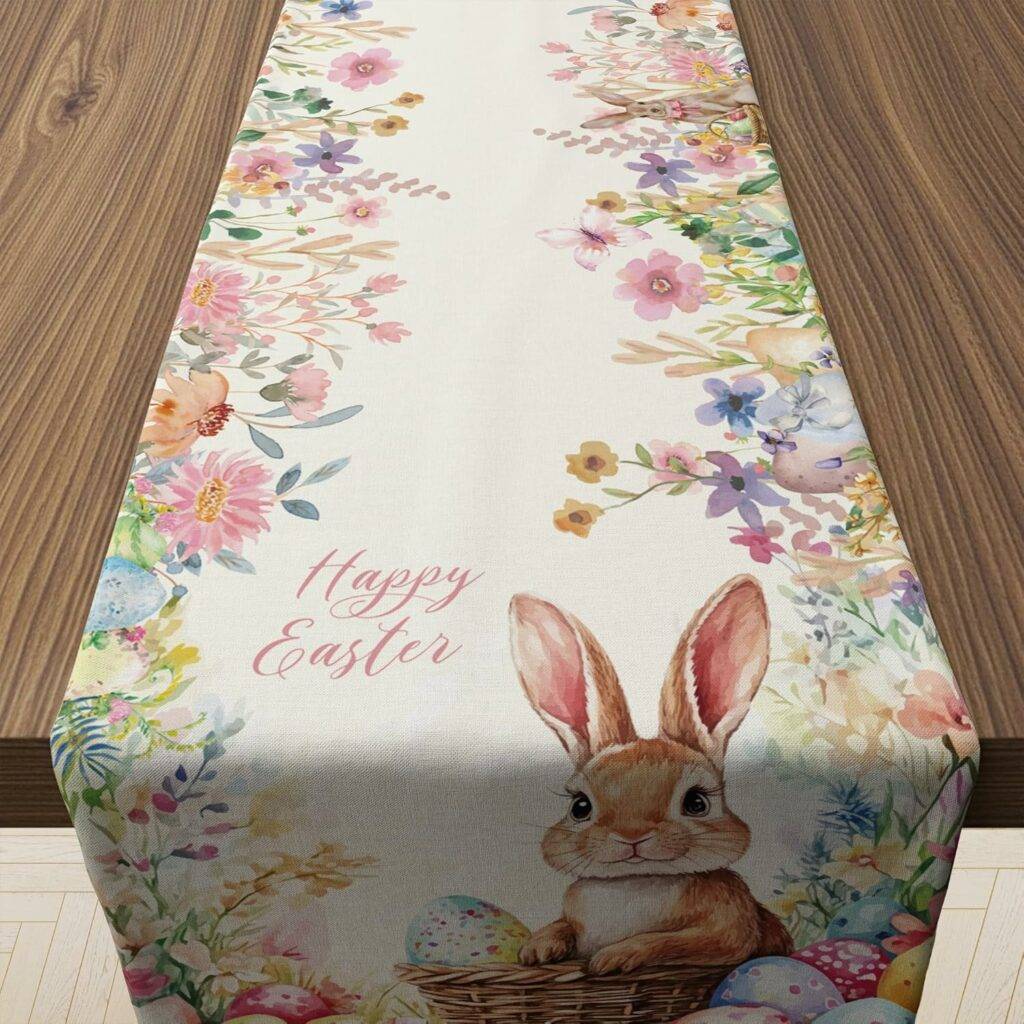 1802 OHOME Easter Decorations - Egg Rabbit Table Runner