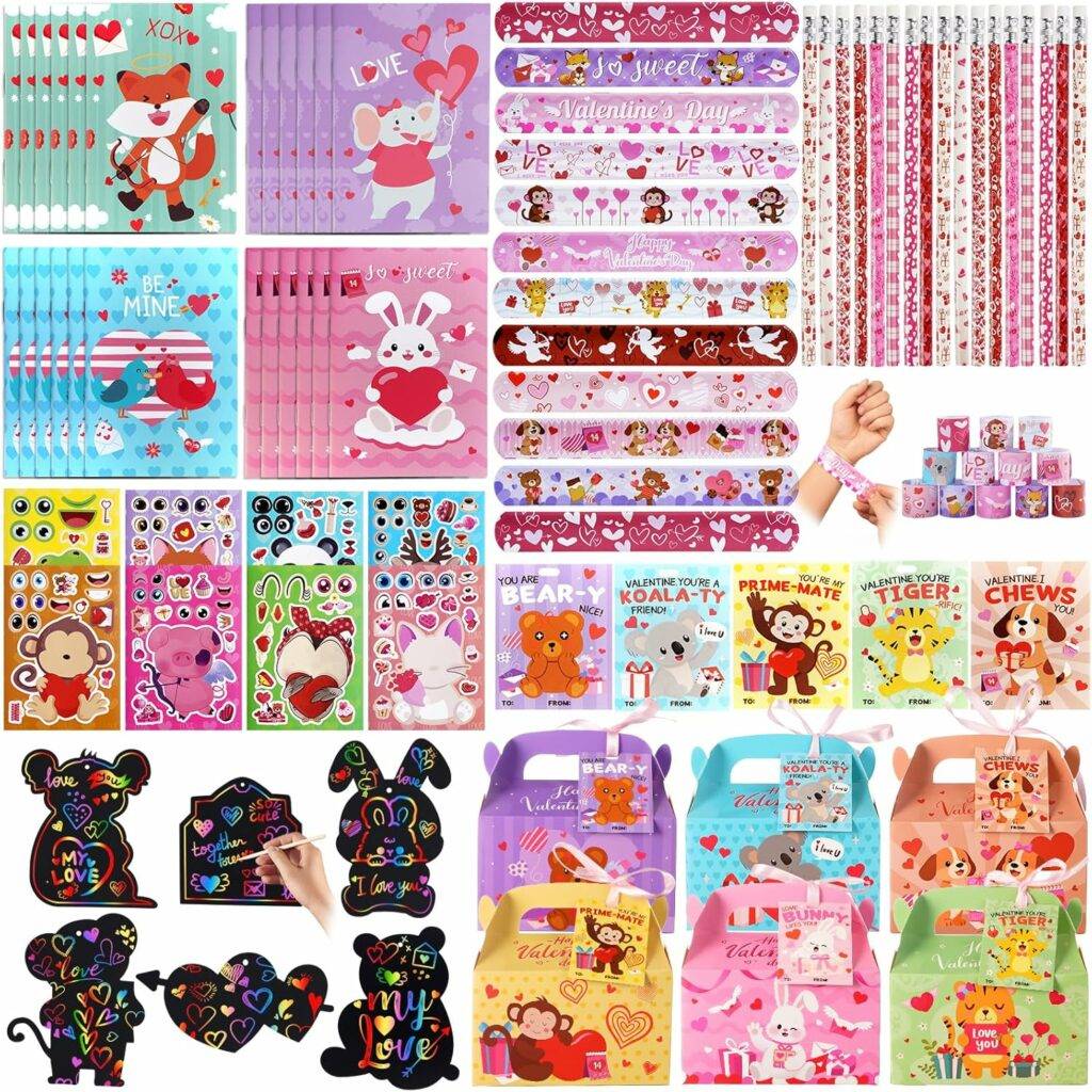 2502 -24 Packs Valentines Day Scrunchies and Cards Set for Kids