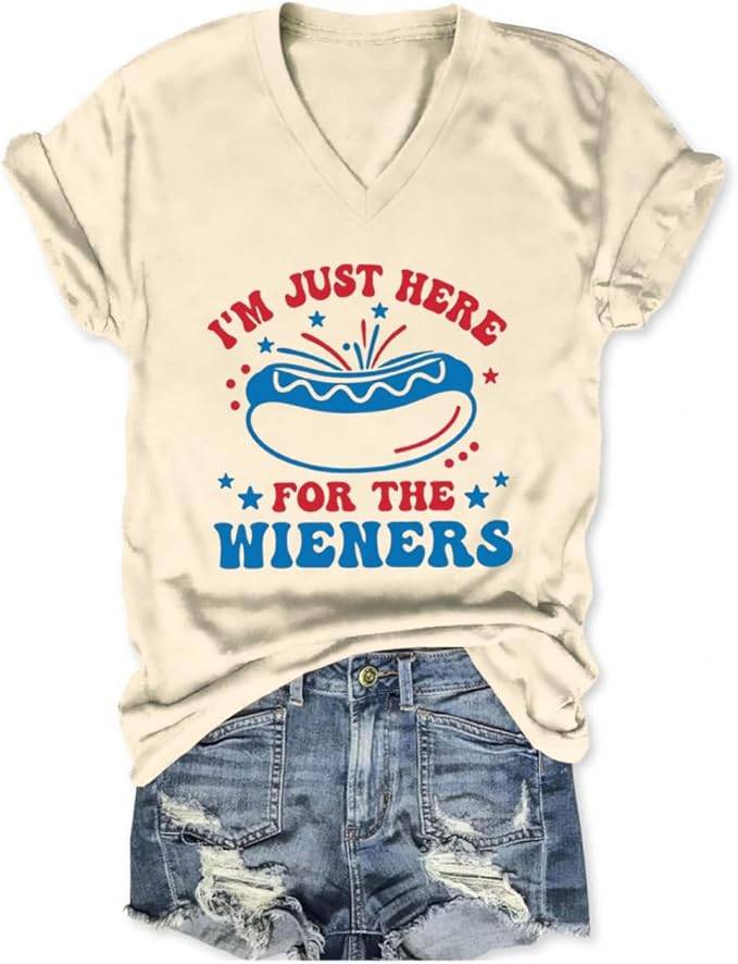 2704 Im Just Here for the Weiners Women Shirts 4th of July Tshirts Funny