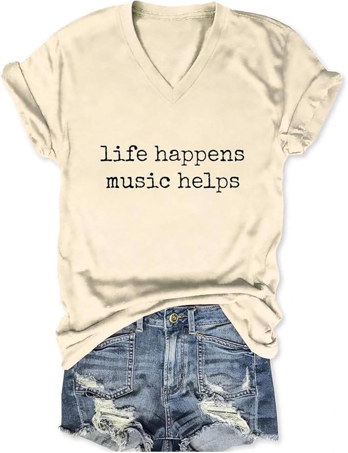 2404 Life Happens Music Helps T Shirt Teacher Shirts for Women Musician Producer Tshirt