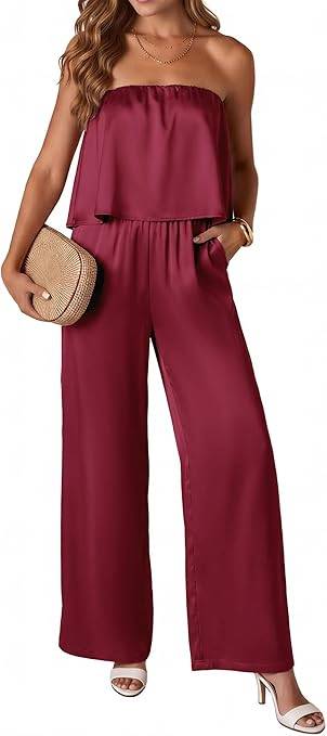 2204 KIRUNDO Jumpsuits For Women Dressy 2026 Summer Satin Strapless Romper0