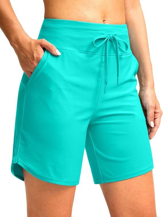 3004 G Gradual Women's 7" High Waisted Swim Board Shorts with Pockets Quick Dry Beach Swimming Shorts