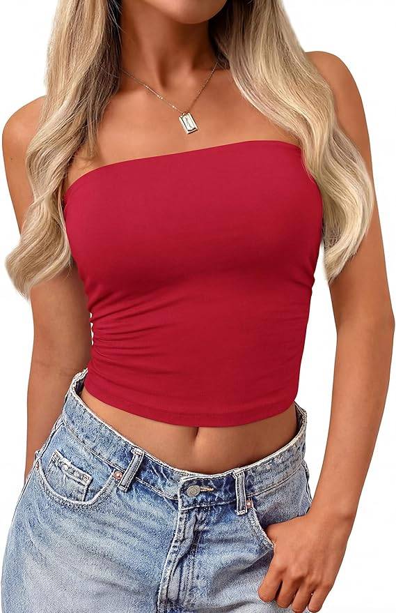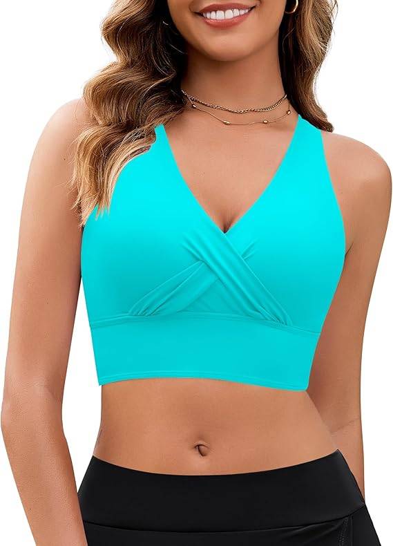 2404 GRAPENT Bikini Top for Women Cropped Tankini Tops Beach Vacation Criss Cross Ruched Padded Bathing Suit Swim Top Only
