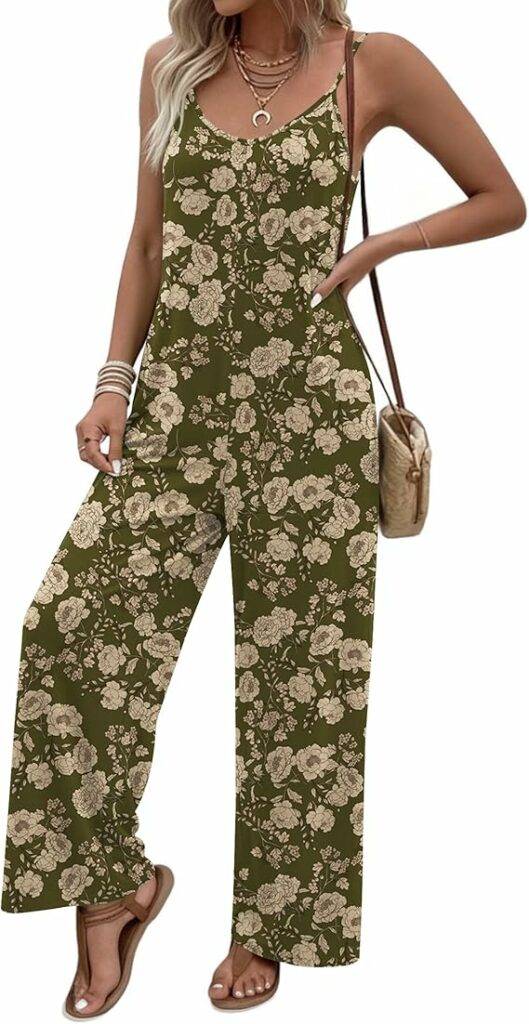 2604 Ekouaer Women Jumpsuits Casual Boho Overalls Sleeveless Spaghetti Strap Long Pants Romper