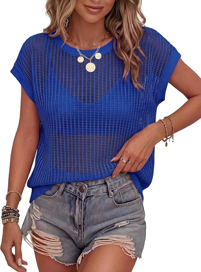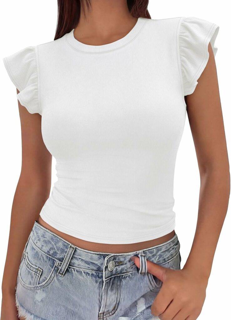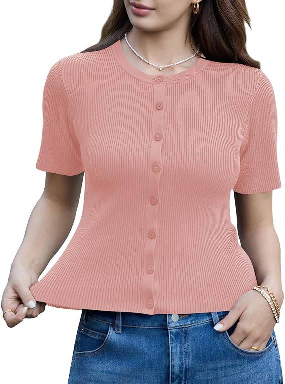 2704 Kistore Short Sleeve Cardigan Women Summer Short Sleeve Lightweight Sweater Button Down Y2K Tops