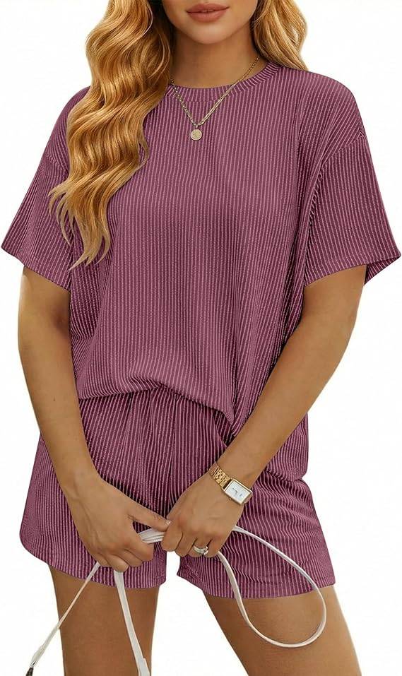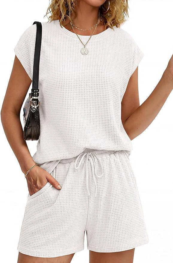 3004 Ekouaer Rompers for Women 2026 Short Sleeve Ribbed Casual Loose Shorts Jumpsuits