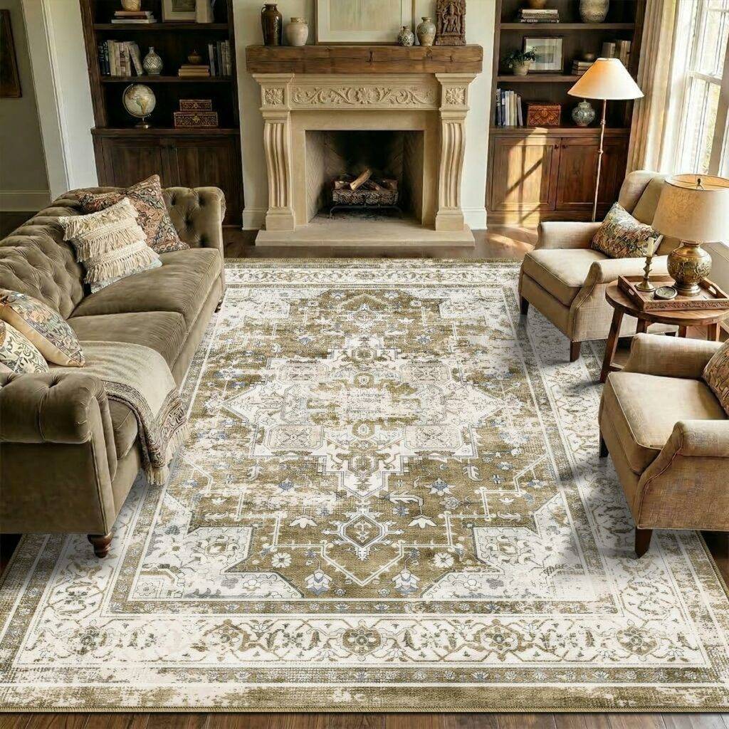 3004 Vintage 8x10 Area Rugs Living Room: Washable Boho Large Neutral Vintage Soft Rug Stain Resistant Distressed Farmhouse