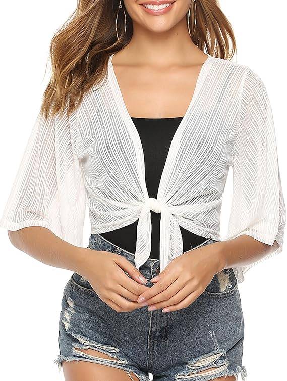 3004 iClosam Women Tie Front Chiffon Shrug Short Sleeve Cropped Sheer Bolero Shrug Cardigan