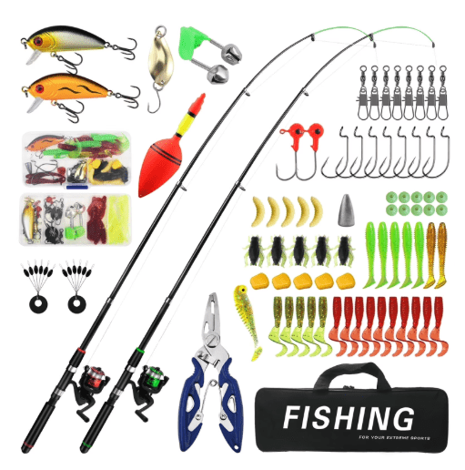 2304 YTAKY Kids Fishing Pole, 75 pcs lure set, Reel Combo Full Kit 3.9ft & 4.9ft Telescopic Casting Rod Pole with Spincast Reel and Hooks Lures Swivels Carry Bag